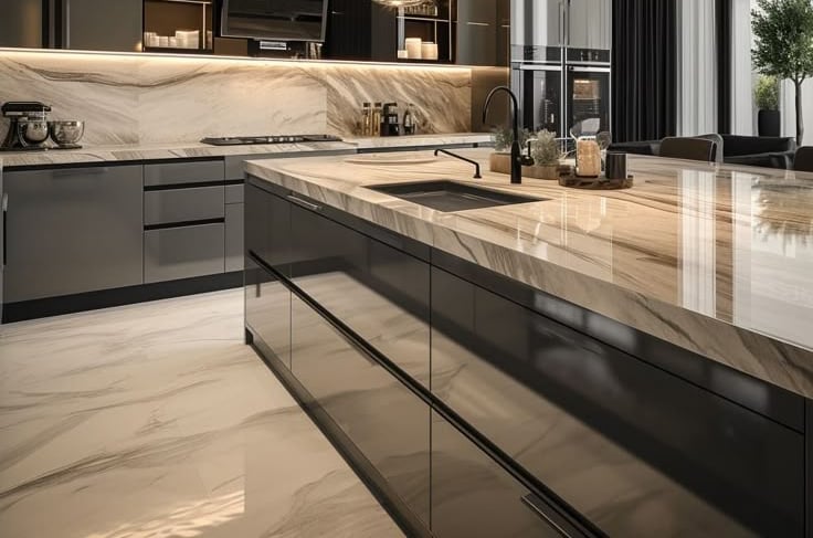 Modern and Luxurious Look – Creates a striking visual impact, adding a sleek and stylish touch to kitchen interiors.